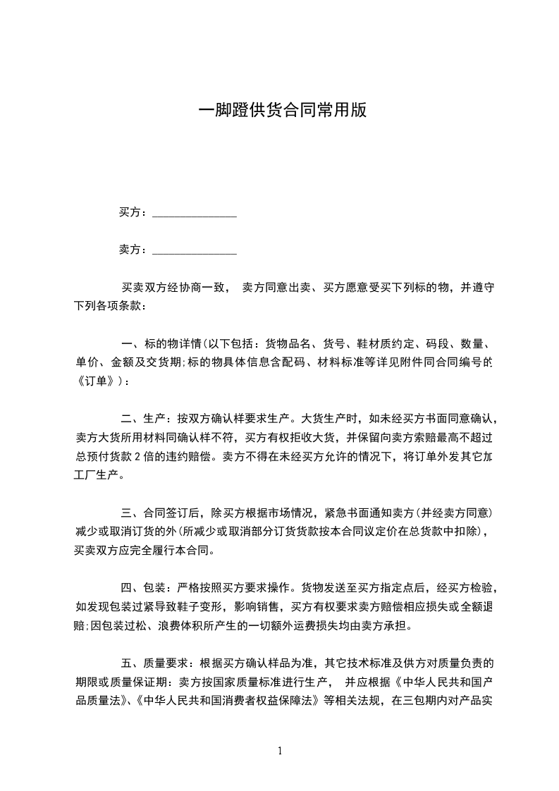 八、验收标准:买方按确认样及相关标准和要求验收所有货物。相关标准以国际鞋类贸易正常检验标准为准,如客户对某个批次(或全部批次)大货有另行质量要求或其他要求,买方需在该批次(或指定批次)交货期前________年,期满另续;