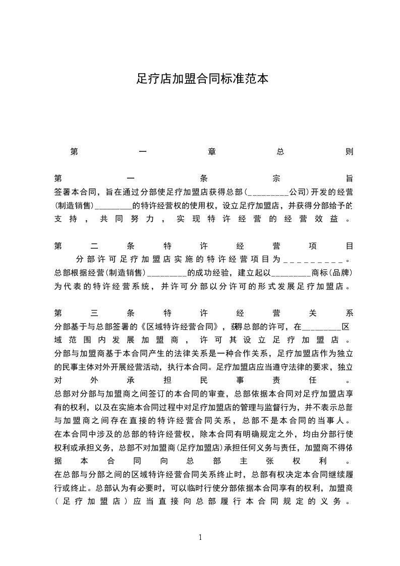 分部基于与总部签署的《区域特许经营合同》,获得总部的许可,在_________区域范围内发展加盟商,许可其设立足疗加盟店。