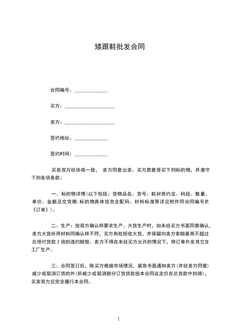 二、生产:按双方确认样要求生产。大货生产时,如未经买方书面同意确认,卖方大货所用材料同确认样不符,买方有权拒收大货,并保留向卖方索赔最高不超过总预付货款2倍的违约赔偿。卖方不得在未经买方允许的情况下,将订单外发其它加工厂生产。