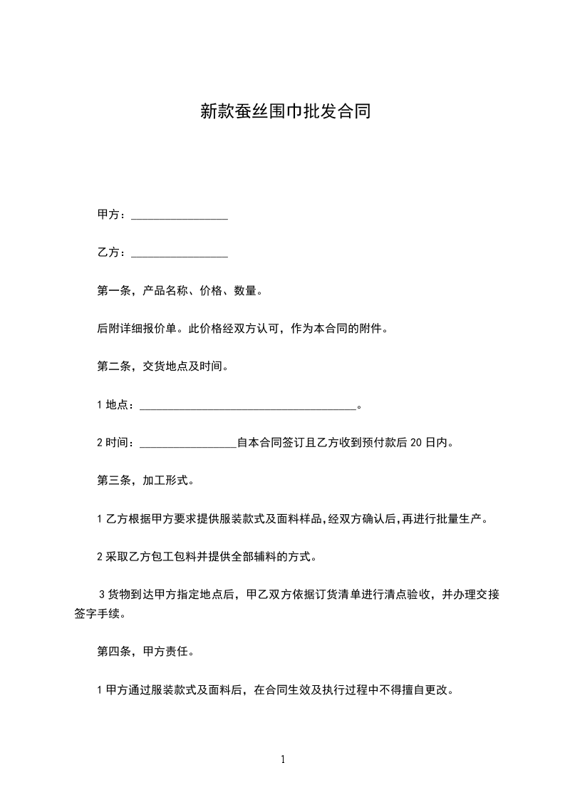 1乙方根据甲方要求提供服装款式及面料样品,经双方确认后,再进行批量生产。