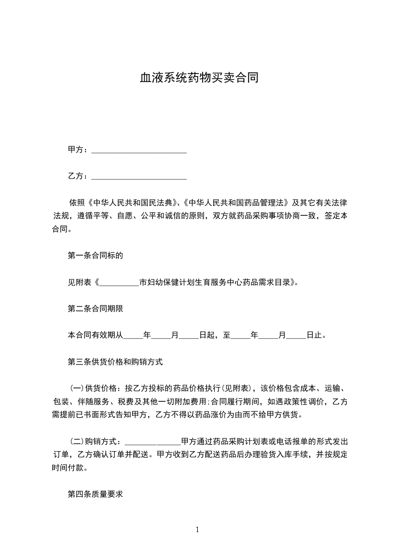 依照《中华人民共和国民法典》、《中华人民共和国药品管理法》及其它有关法律法规,遵循平等、自愿、公平和诚信的原则,双方就药品采购事项协商一致,签定本合同。