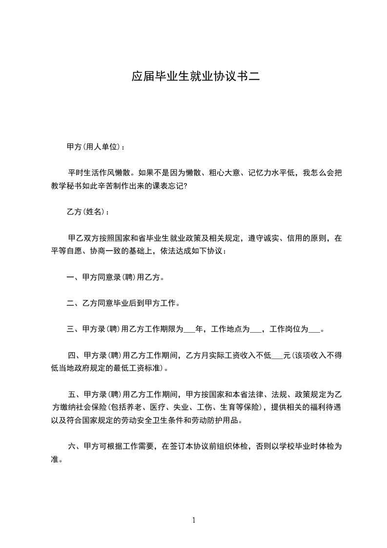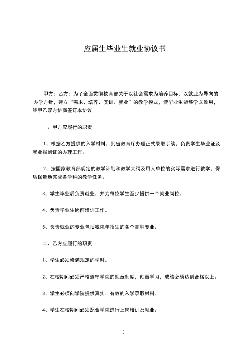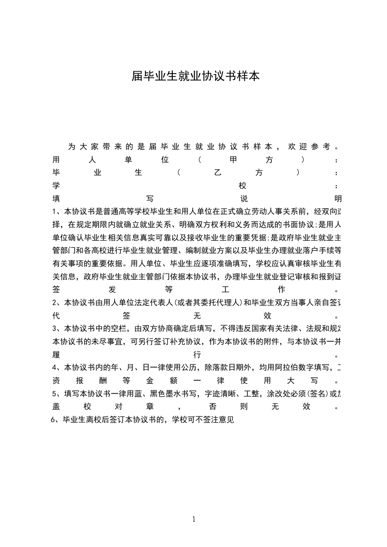 为大家带来的是届毕业生就业协议书样本,欢迎参考。