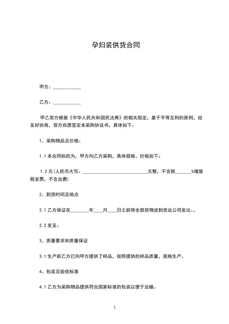 4.1乙方为采购物品提供符合国家标准的包装以便于运输。