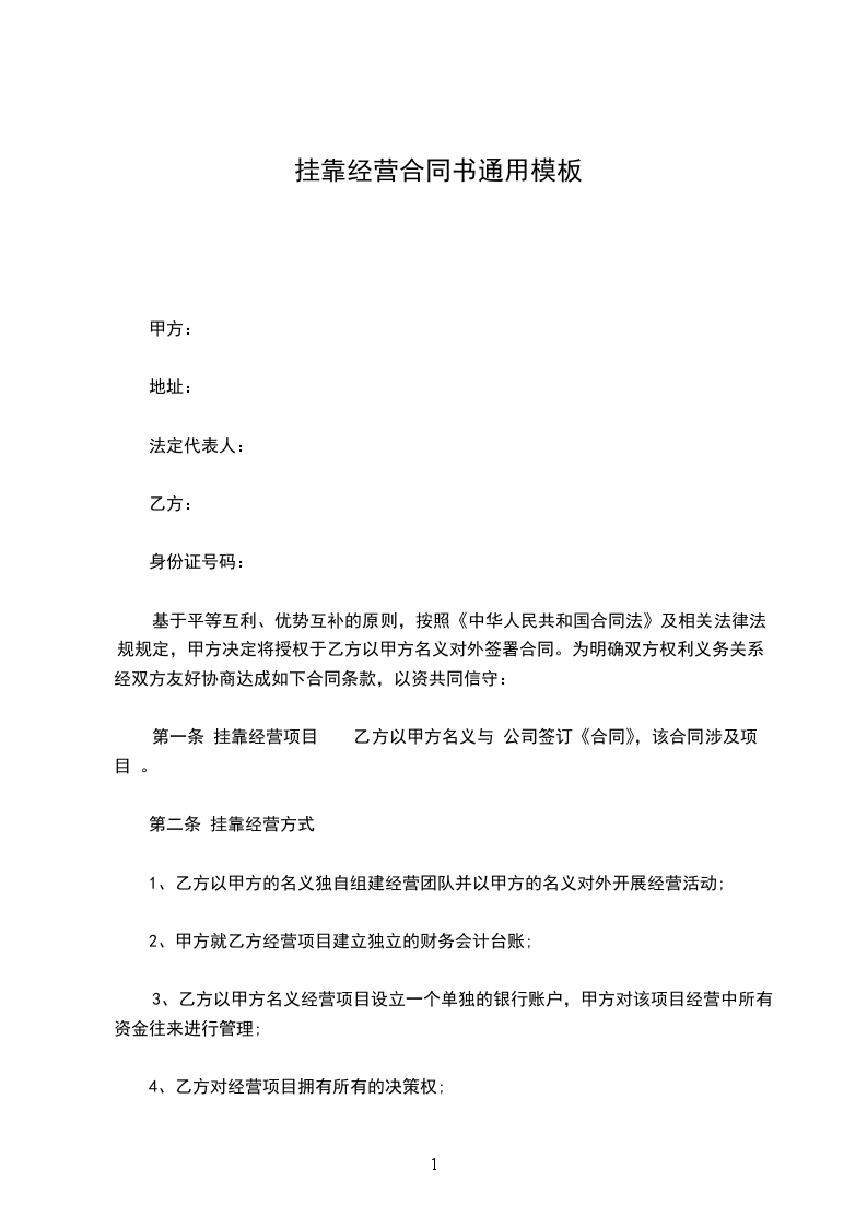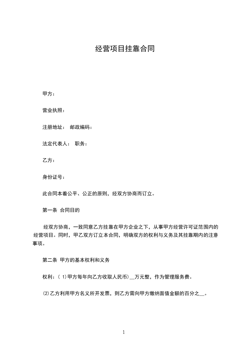 第一条 挂靠经营项目 乙方以甲方名义与 公司签订《合同》,该合同涉及项目 。