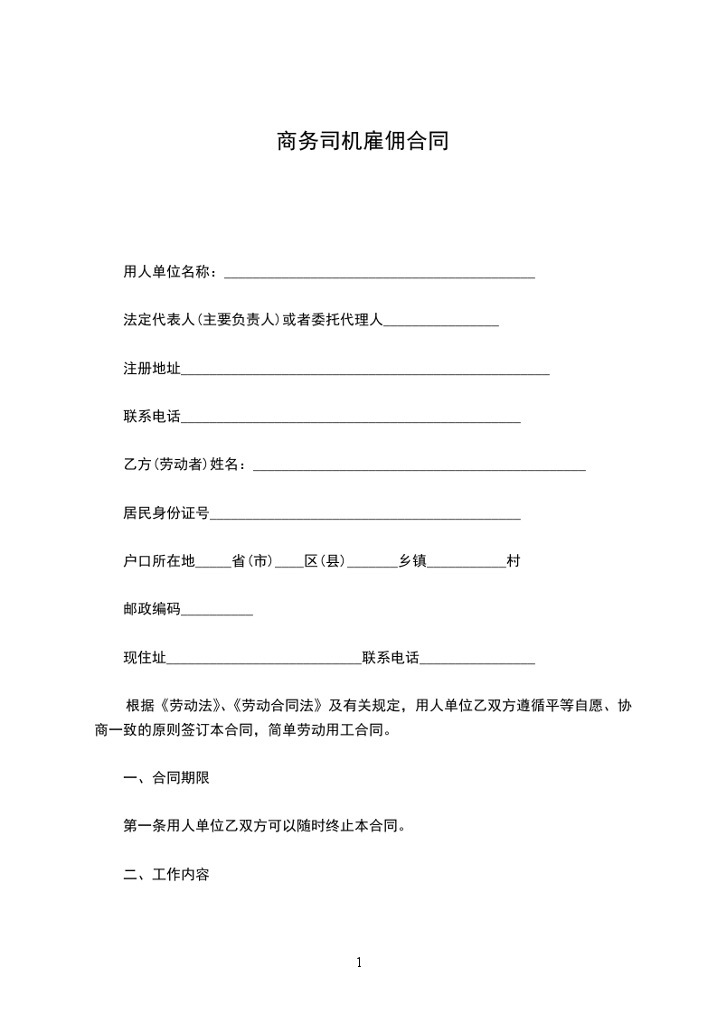 (二)合同期限及试用期