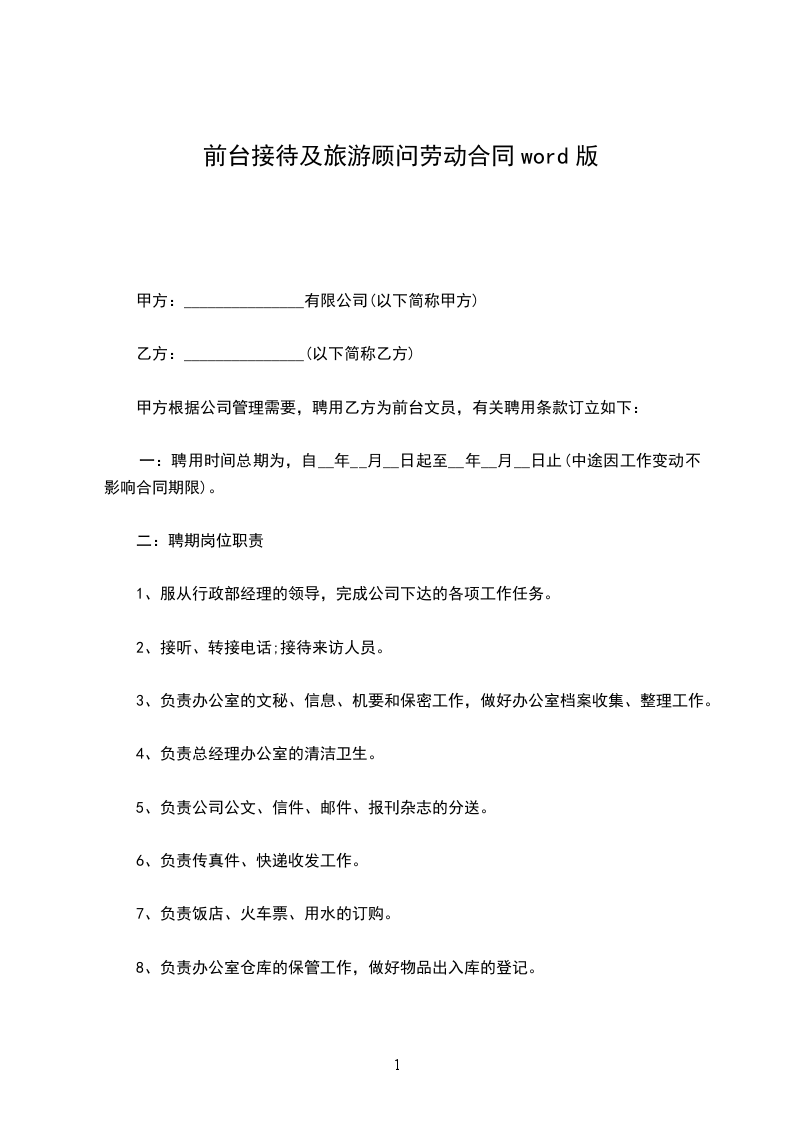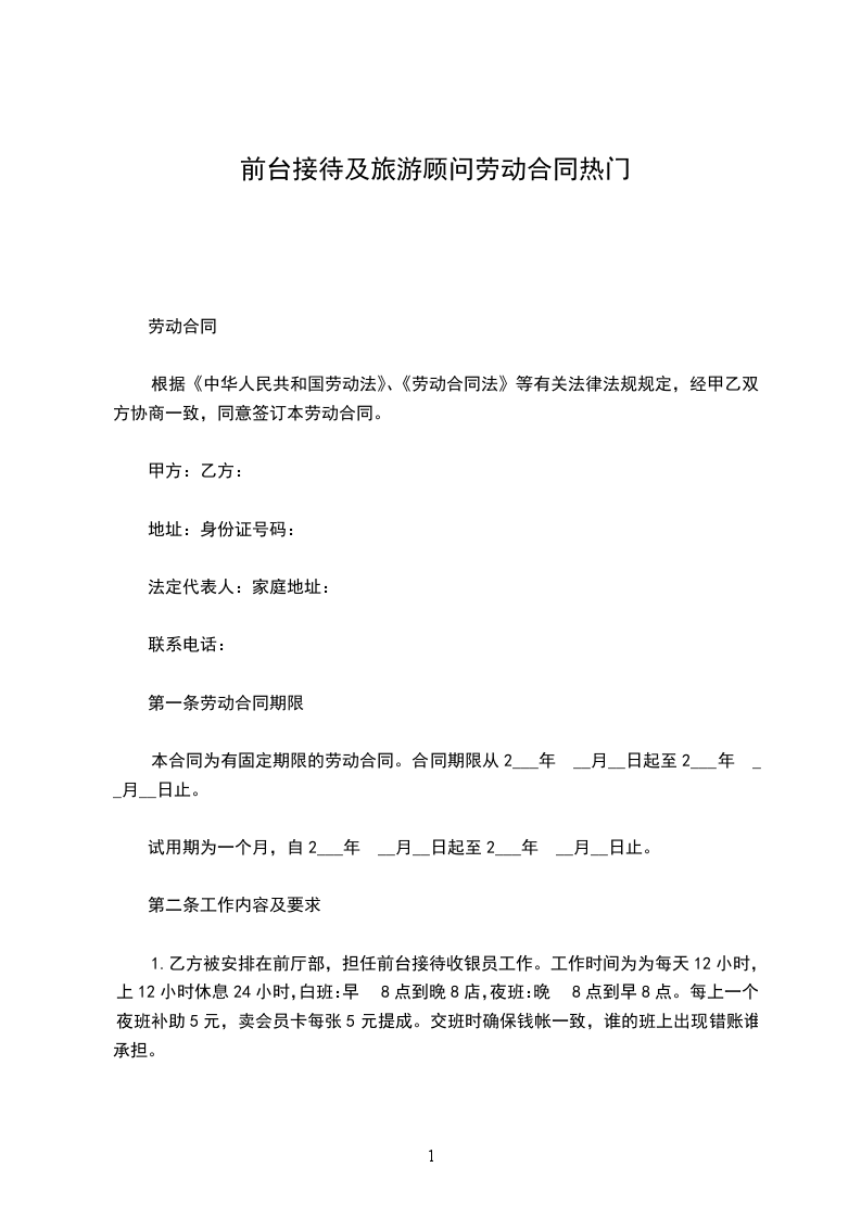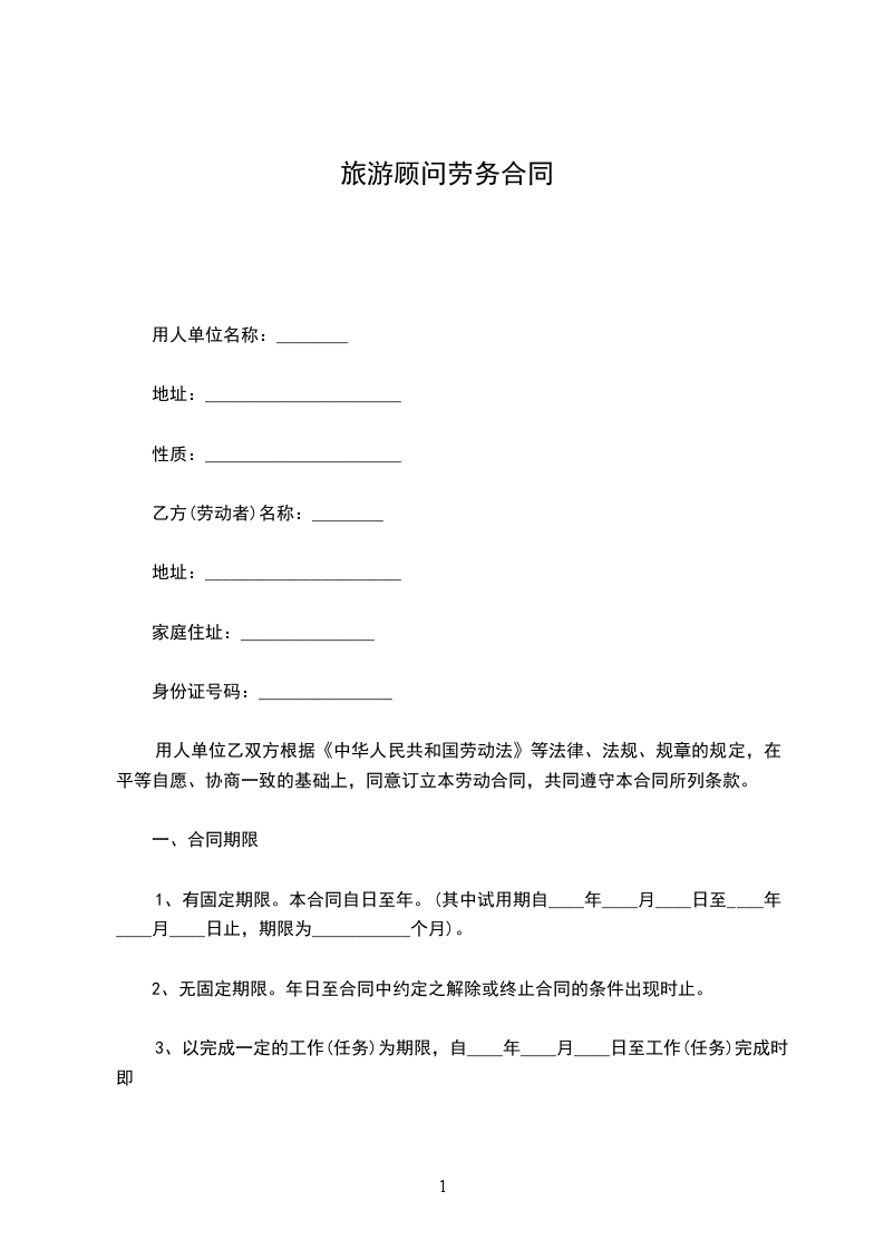 1、有固定期限。本合同自日至年。(其中试用期自____年____月____日至____年____月____日止,期限为___________个月)。