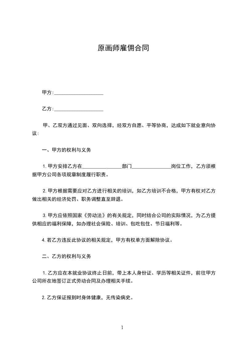 甲、乙双方通过见面、双向选择,经双方自愿、平等协商,达成如下就业意向协议: