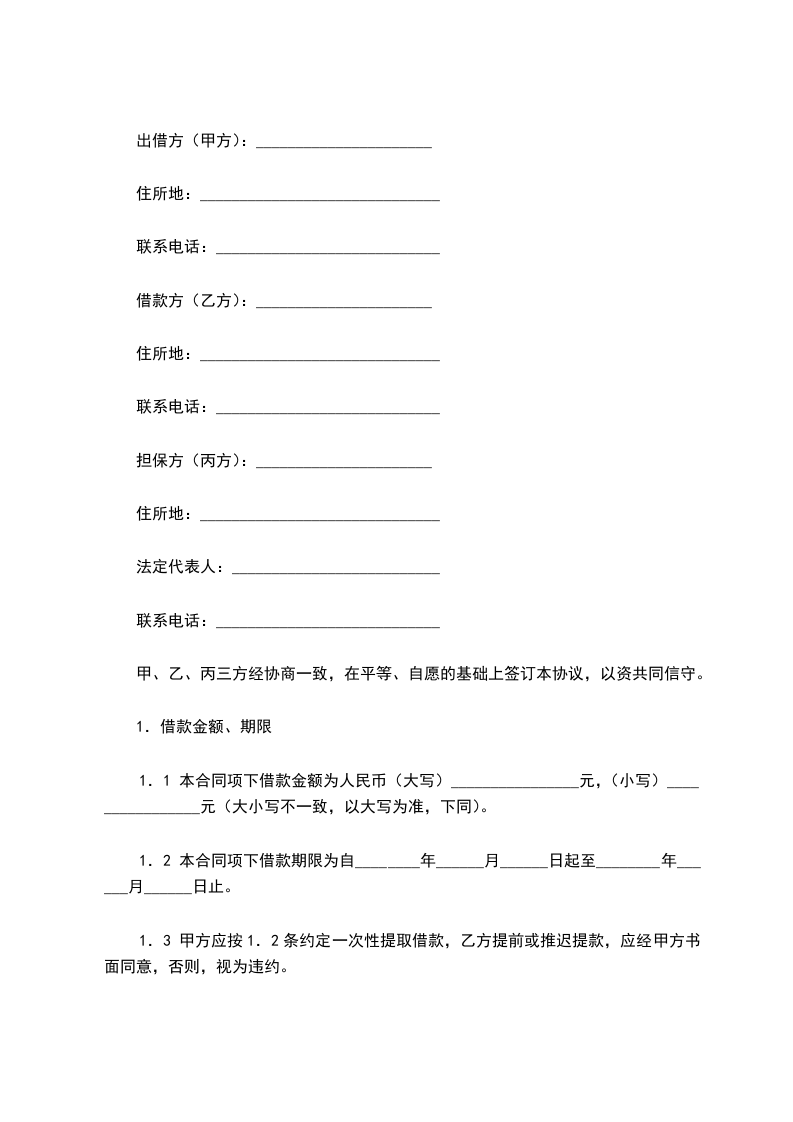 1.2 本合同项下借款期限为自________年______月______日起至________年______月______日止。