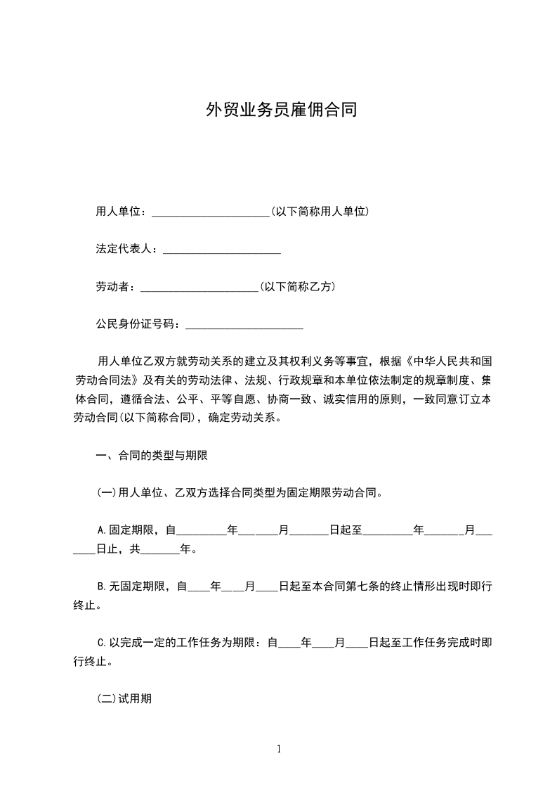 1、固定期限。合同期限自______月______日起至其中包括试用期_________个月(试用期不是必须条款)。