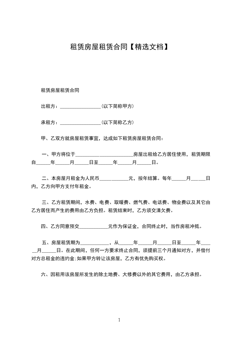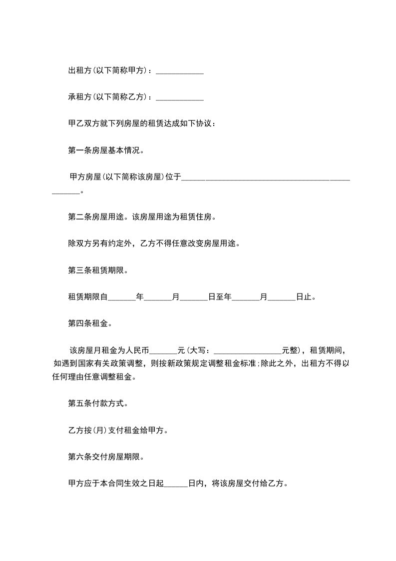 该房屋月租金为人民币_______元(大写:_________________元整),租赁期间,如遇到国家有关政策调整,则按新政策规定调整租金标准;除此之外,出租方不得以任何理由任意调整租金。