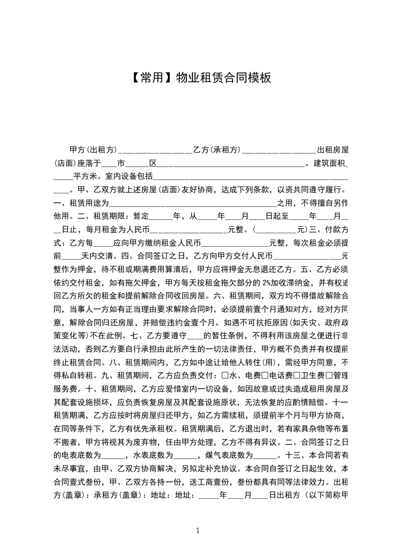 一、租赁物件: