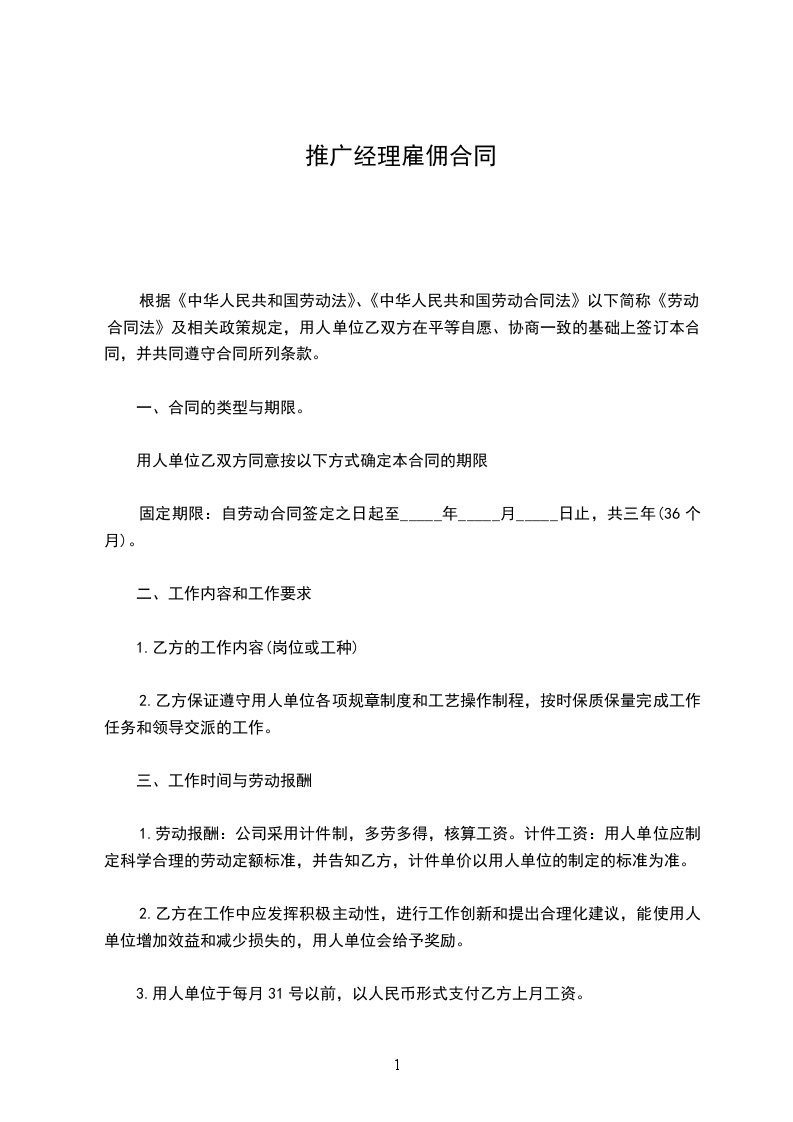固定期限:自劳动合同签定之日起至_____年_____月_____日止,共三年(36个月)。