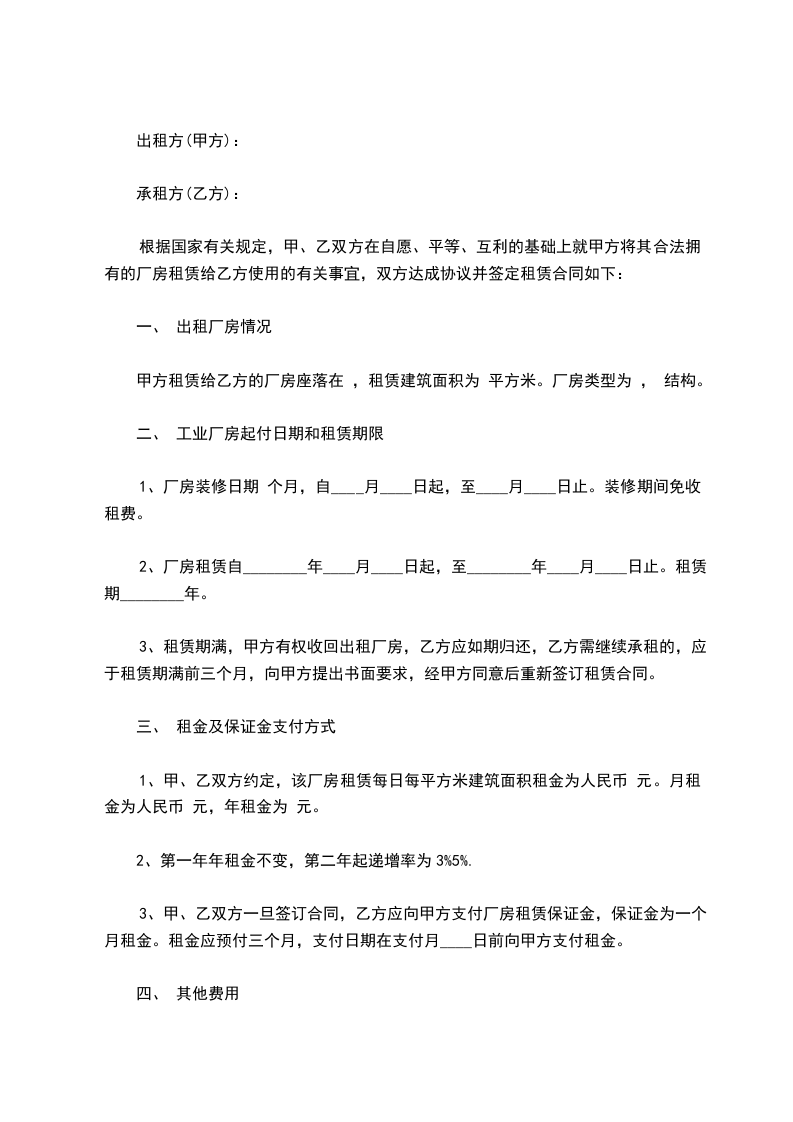 2、厂房租赁自________年____月____日起,至________年____月____日止。租赁期________年。