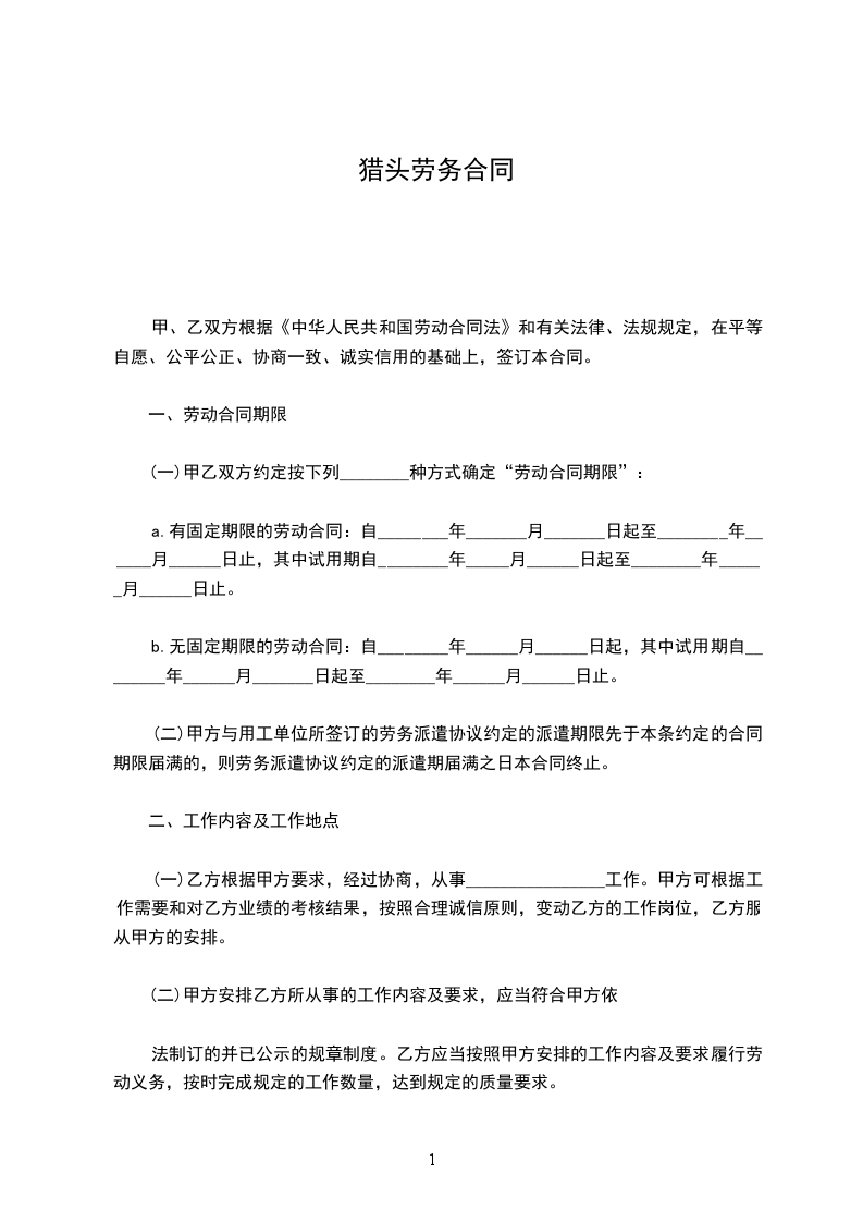 (一)乙方根据甲方要求,经过协商,从事________________工作。甲方可根据工作需要和对乙方业绩的考核结果,按照合理诚信原则,变动乙方的工作岗位,乙方服从甲方的安排。