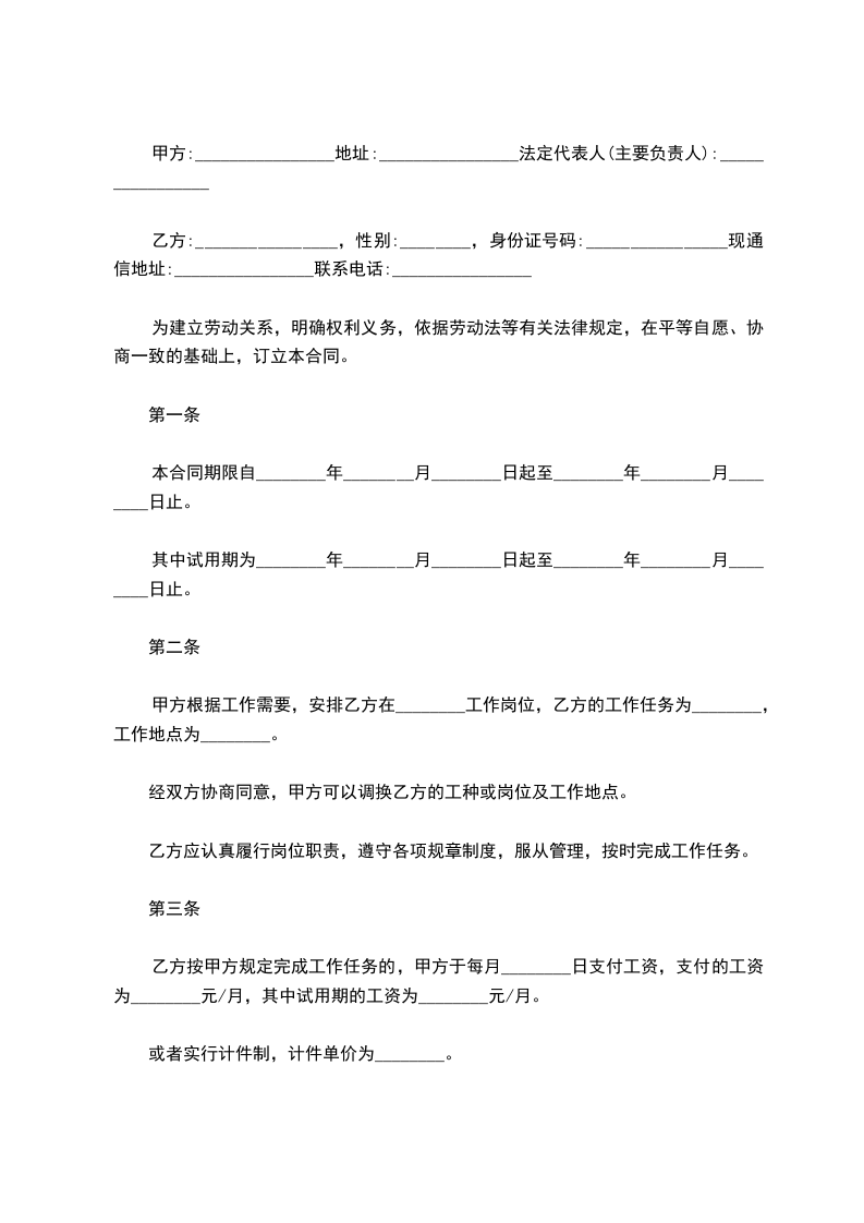 a.有固定期限的劳动合同:自________年_______月_______日起至________年______月______日止,其中试用期自________年_____月______日起至________年______月______日止。