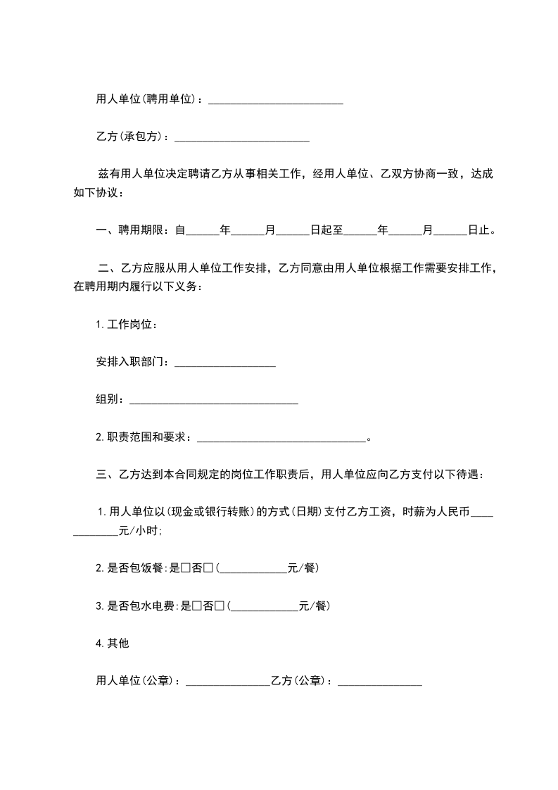 一、聘用期限:自______年______月______日起至______年______月______日止。