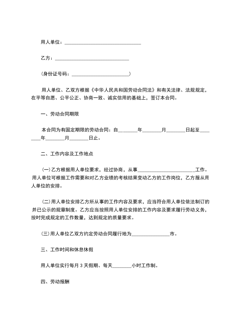 (三)用人单位乙双方约定劳动合同履行地为________________市。