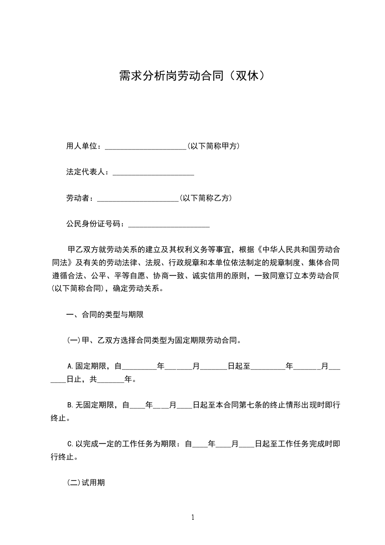 信用分析岗劳务合同