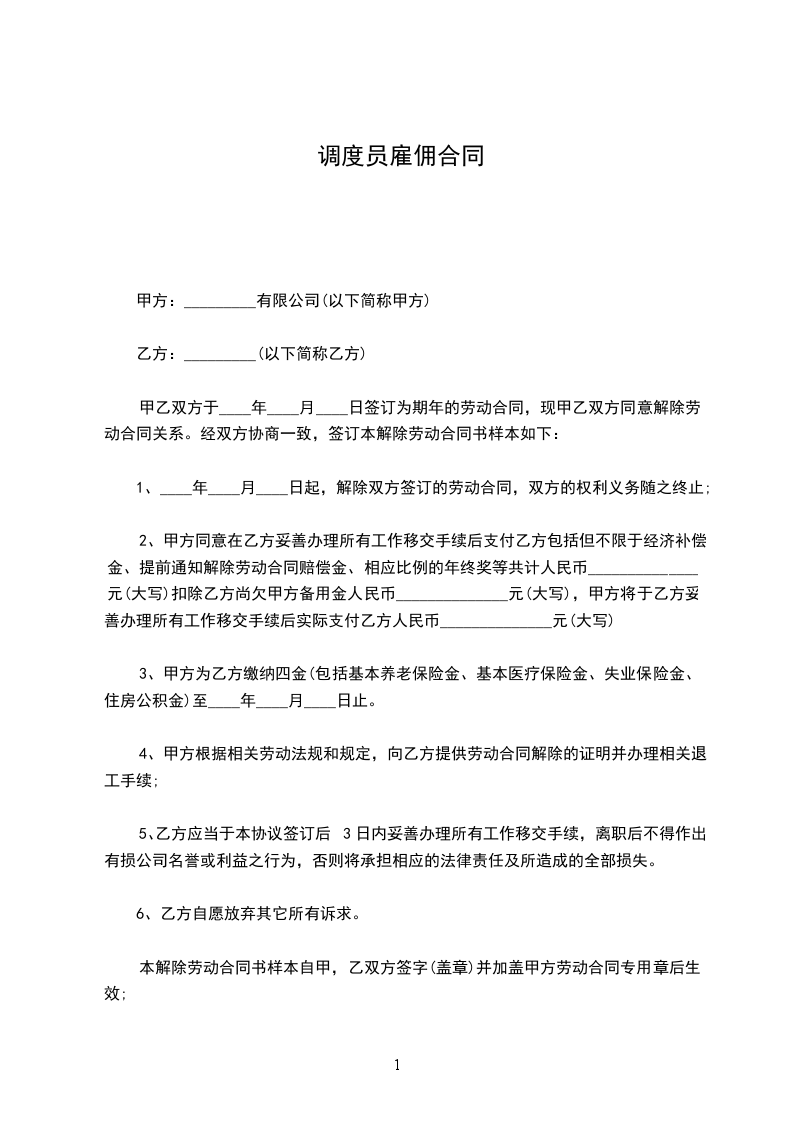 1、____年____月____日起,解除双方签订的劳动合同,双方的权利义务随之终止;