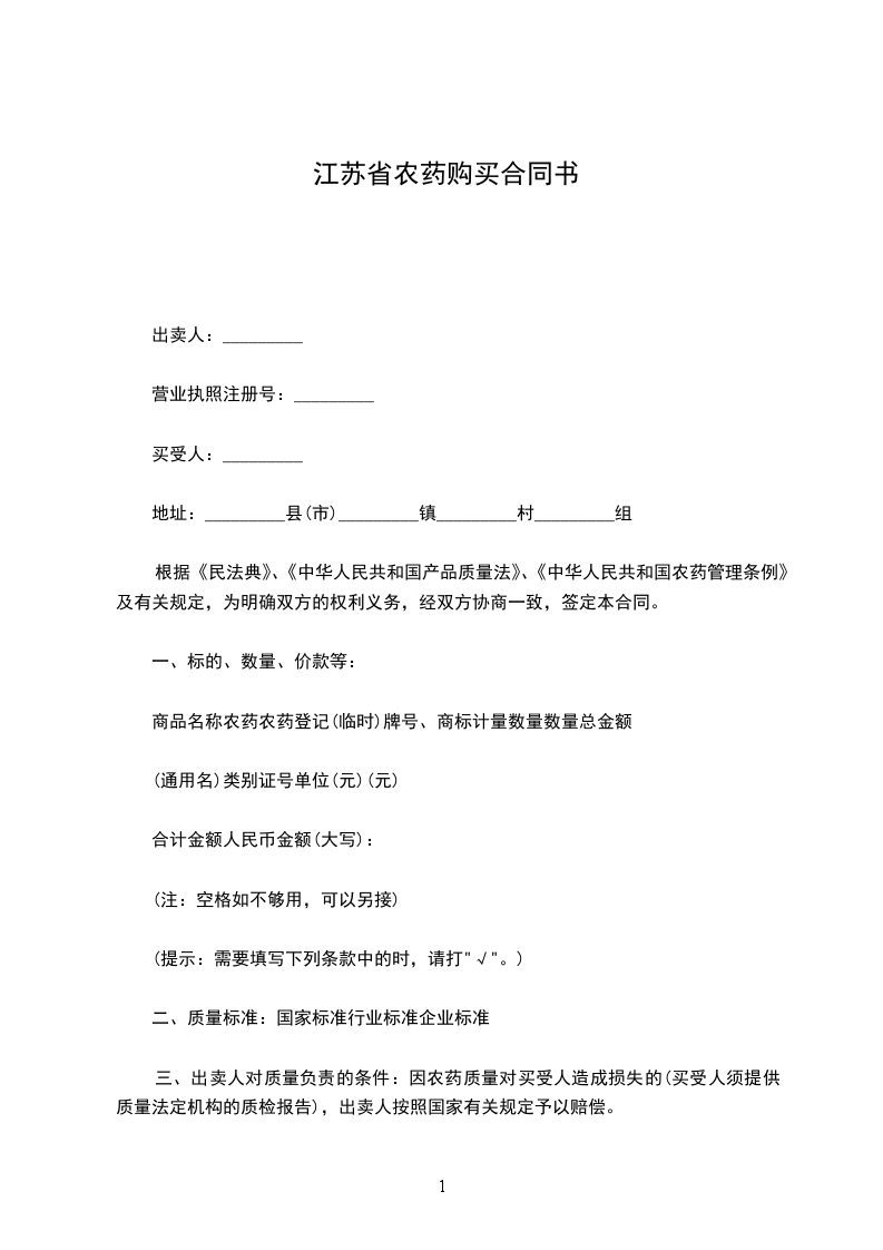 根据《民法典》、《中华人民共和国产品质量法》、《中华人民共和国农药管理条例》及有关规定,为明确双方的权利义务,经双方协商一致,签定本合同。