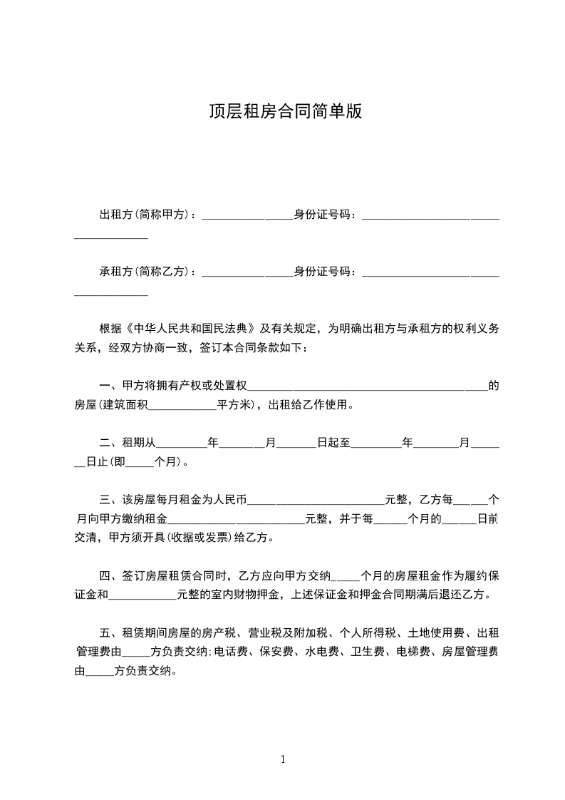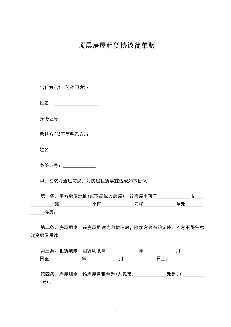 承租方(简称乙方):________________身份证号码:_____________________________________