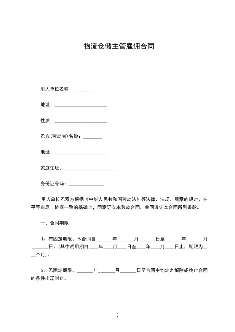 1、固定期限。合同期限自______月______日起至其中包括试用期_________个月(试用期不是必须条款)。