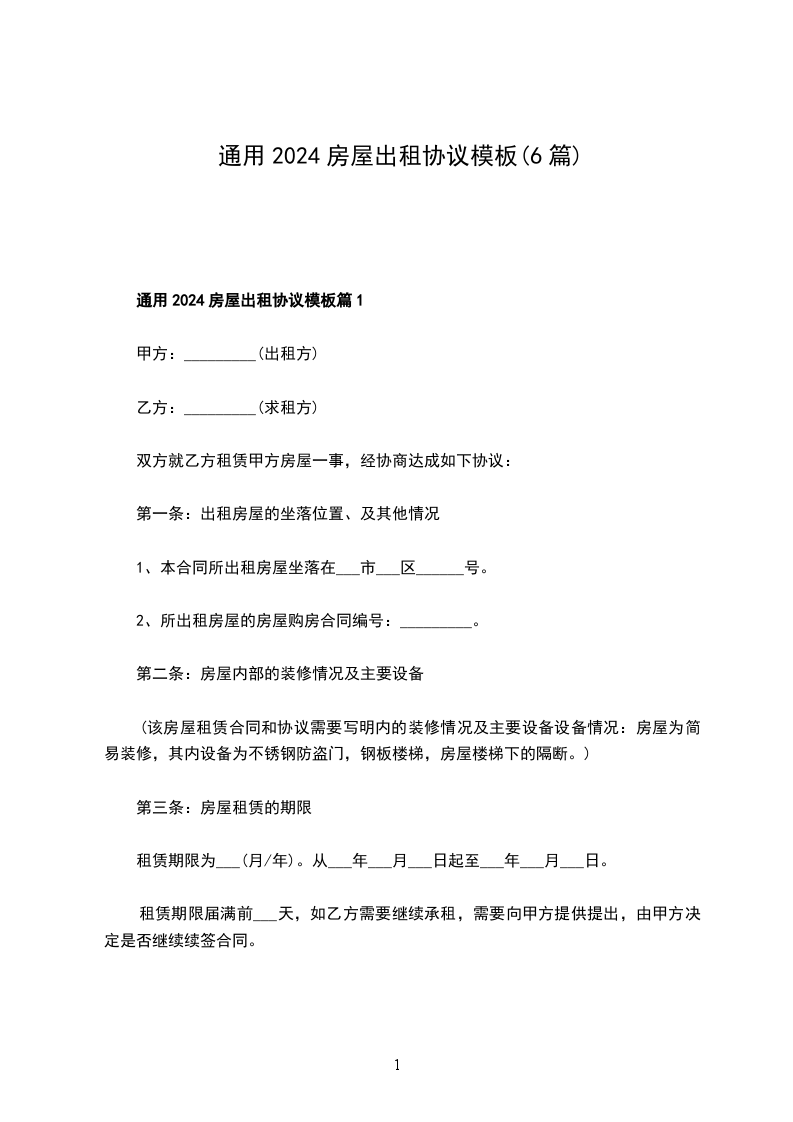 1、甲方将其拥有的位于_____市___________________区___________________的房屋(以下简称“该房屋”)租给乙方使用,用途为___________________,房屋面积为___________________平方米。