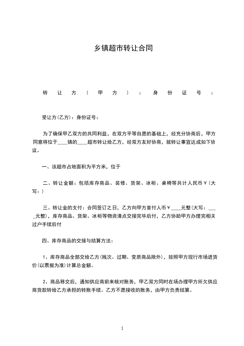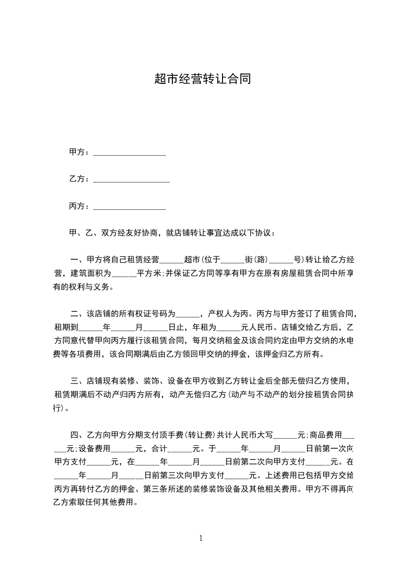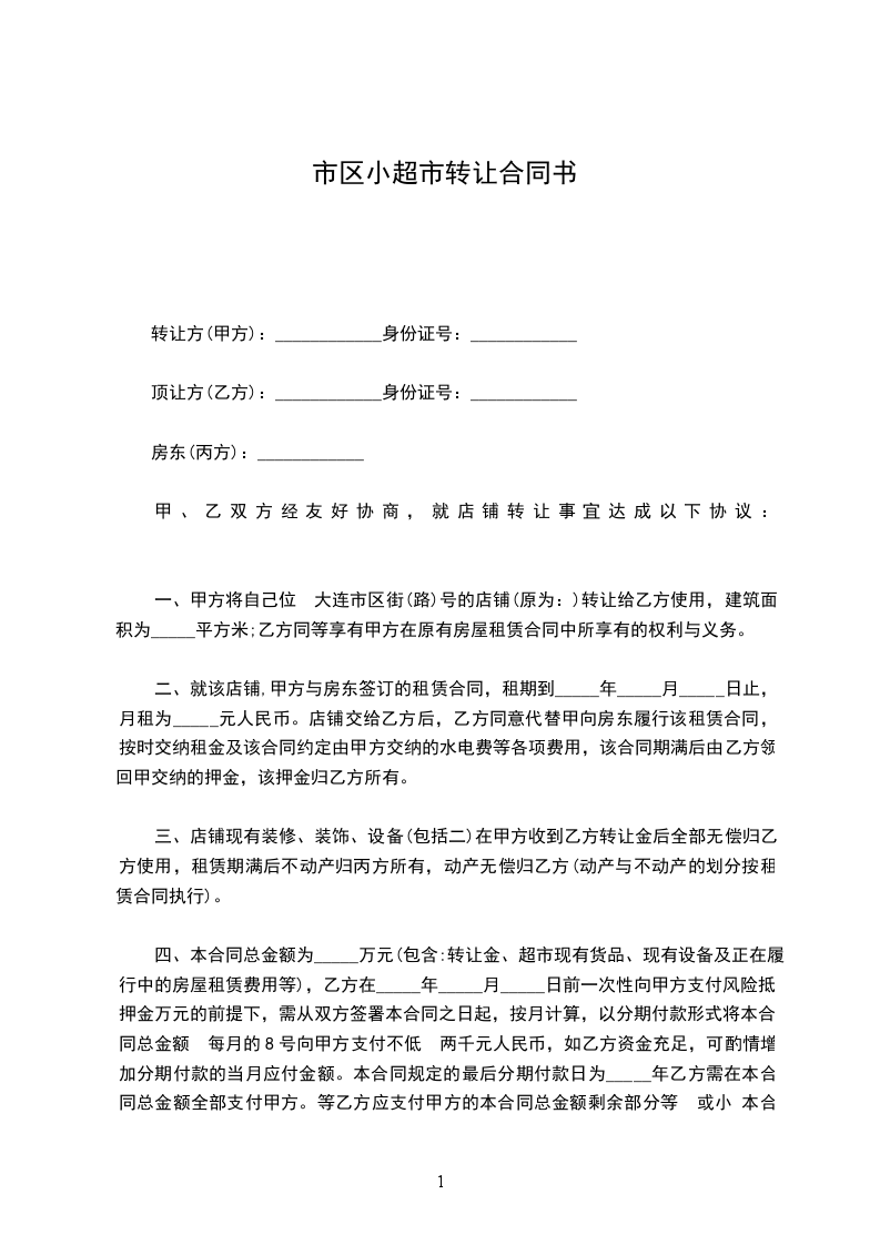 第一条甲方于________年____月____日前将位于________________店铺(面积为__平方米)转让给乙方使用。