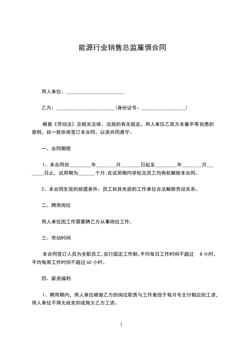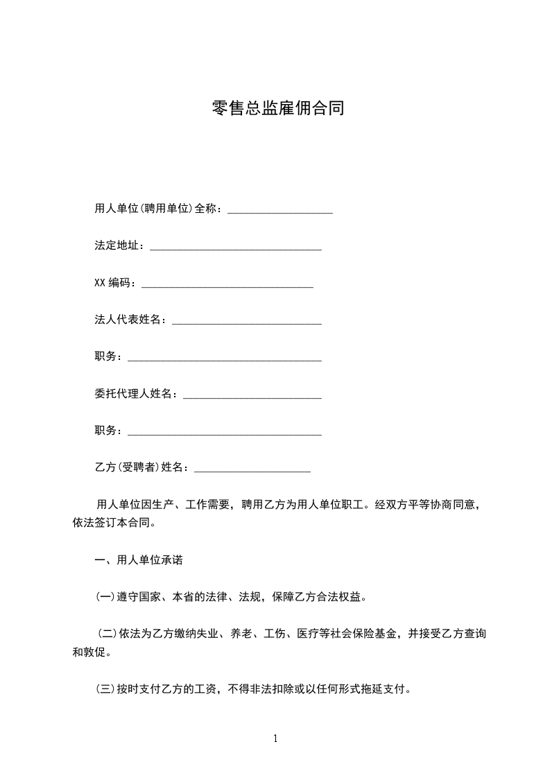 零售总监雇佣合同