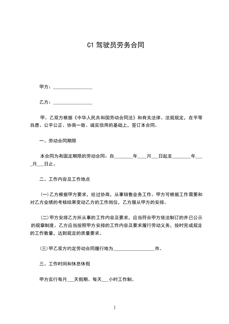 C1驾驶员劳务合同