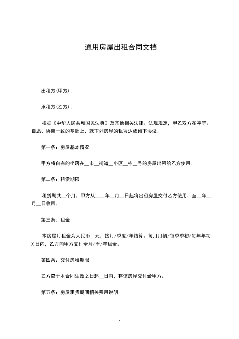 根据《中华人民共和国民法典》及其他相关法律、法规规定,甲乙双方在平等、自愿、协商一致的基础上,就下列房屋的租赁达成如下协议: