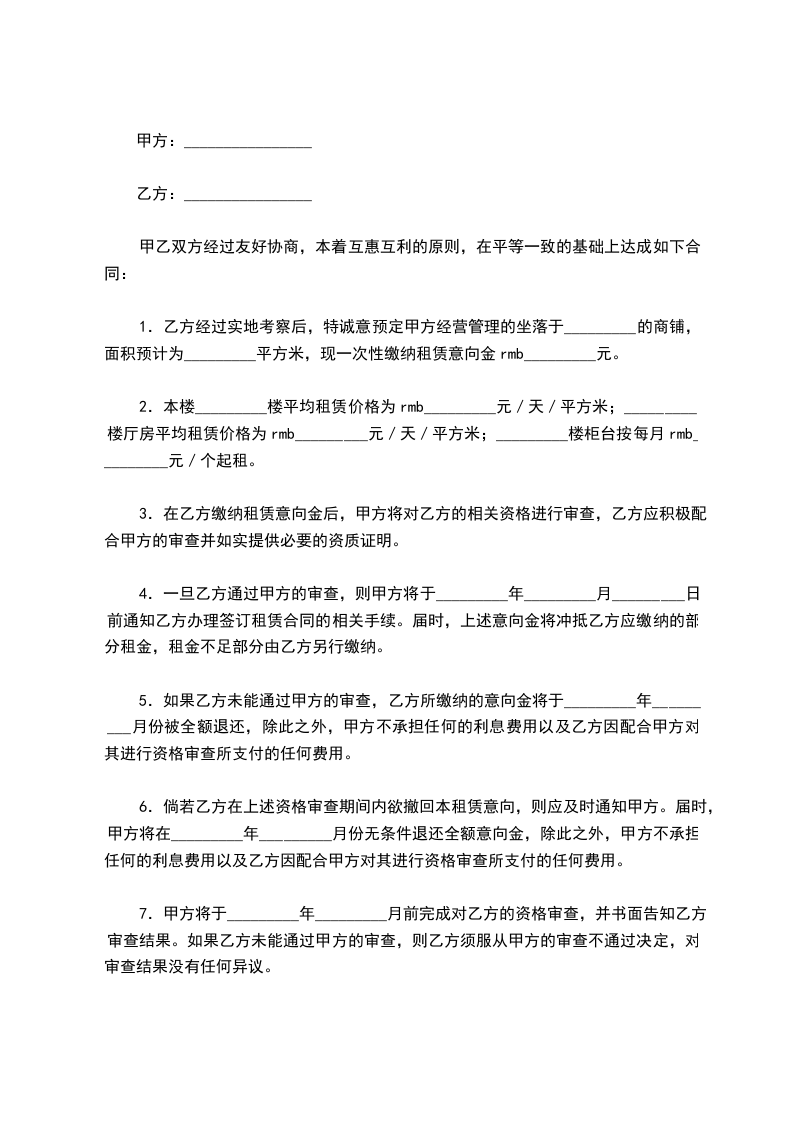 甲方同意将自己的产权商铺出租给乙方,双方在法律的基础上,经友好协商,制定如下协议: