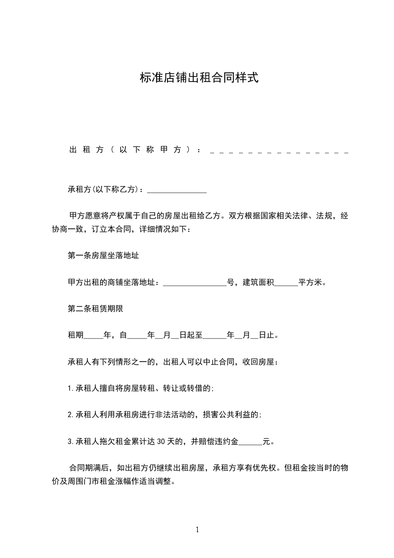 甲方出租的商铺坐落于____街____号,建筑面积______平方米。