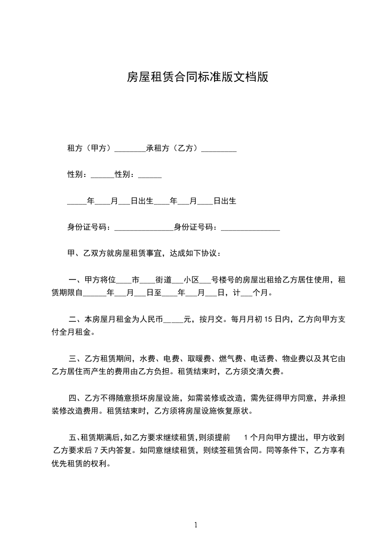 八、在租期内,乙方提前退房不退押金。期满乙方要提前一个月与甲方商定交还或续租事宜。