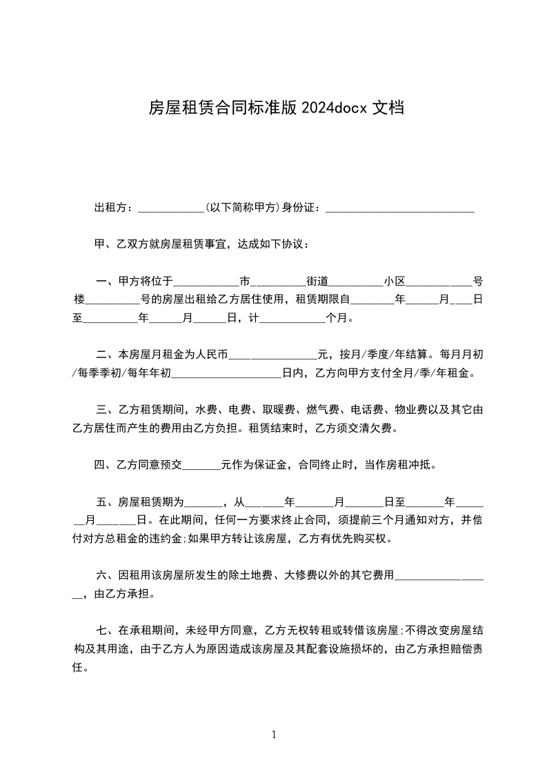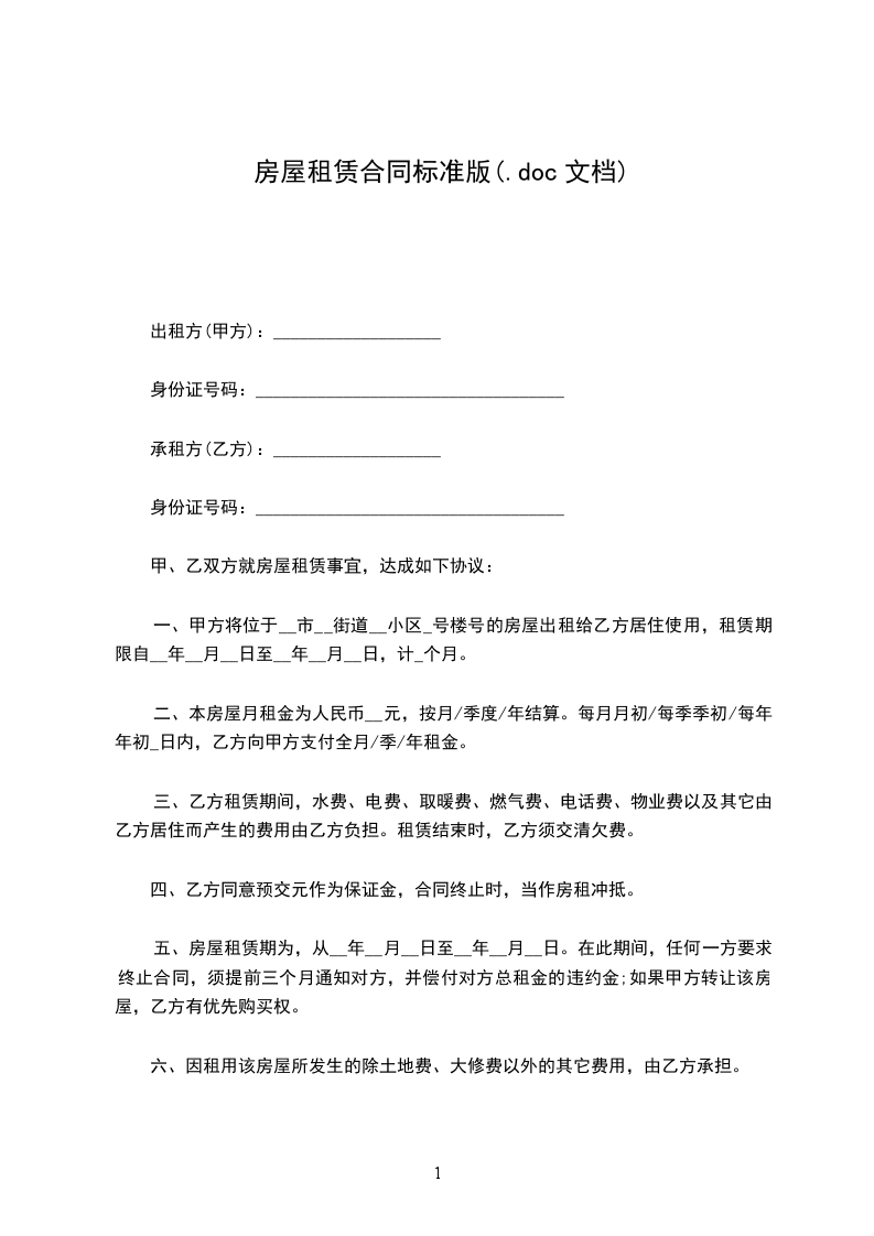 甲方(出租人)______________乙方(承租人)_____________________