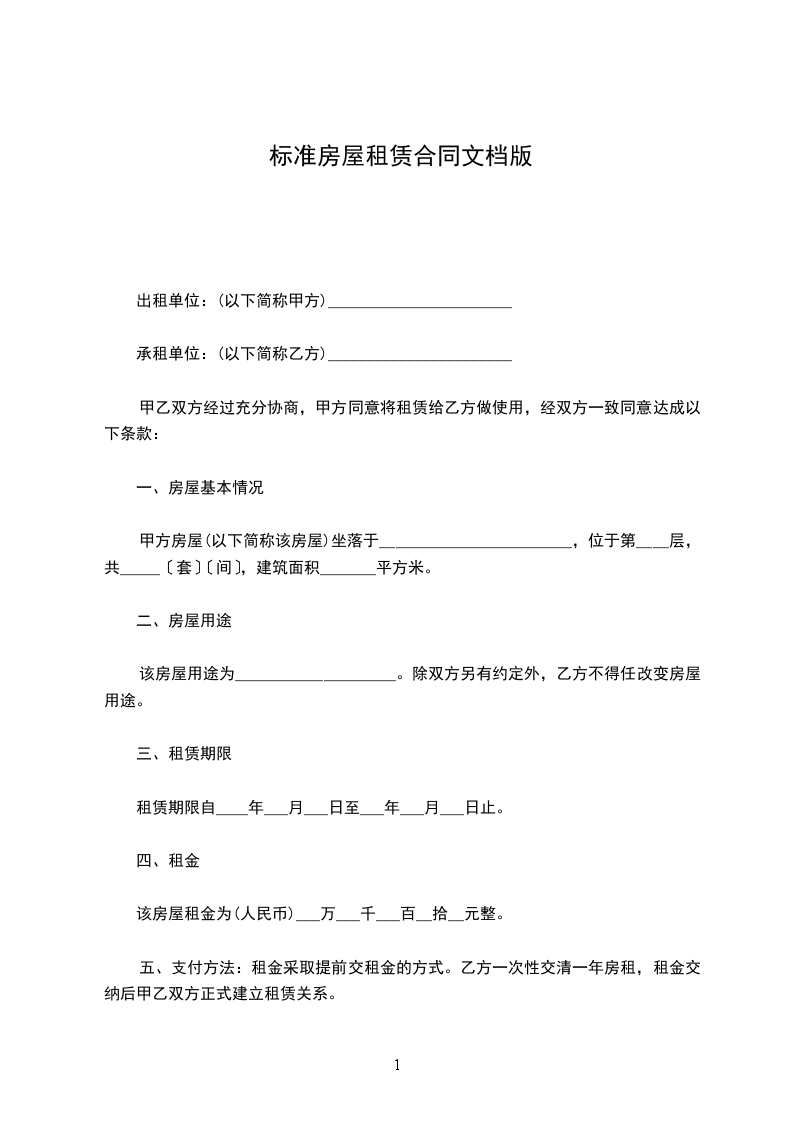 二、租期定为自_______年_______月_______日至_______年_______月_______日止。