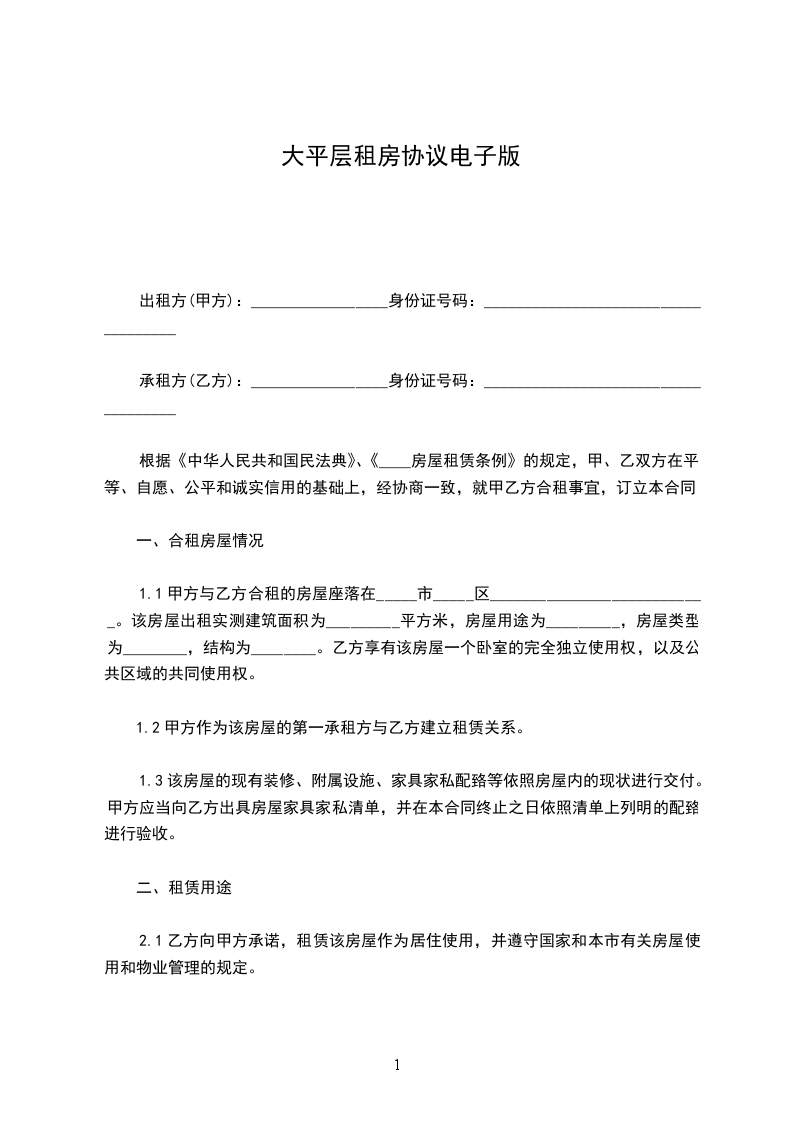1.1甲方与乙方合租的房屋座落在_____市_____区___________________________。该房屋出租实测建筑面积为_________平方米,房屋用途为_________,房屋类型为________,结构为________。乙方享有该房屋一个卧室的完全独立使用权,以及公共区域的共同使用权。