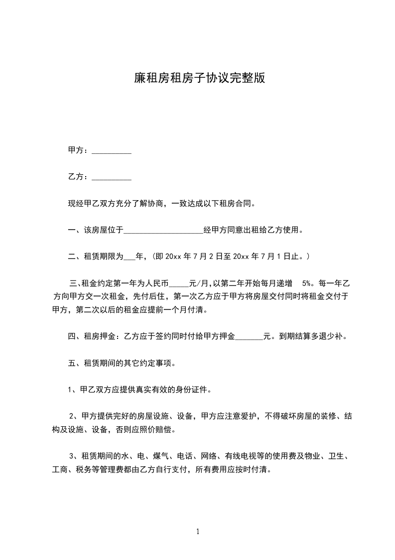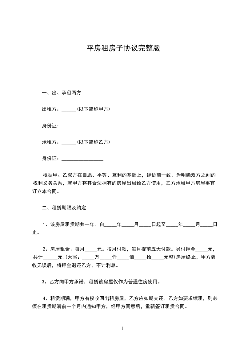 五、租赁期间,双方均不得借故解除合同,当事人一方如有正当理由要求解除合同时,须提前1个月通知对方,经对方同意后解除合同,由提前解除合同的一方支付壹个月租金作为违约赔偿金。
