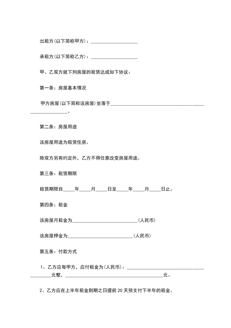 2、乙方应在上半年租金到期之日提前20天预支付下半年的租金。