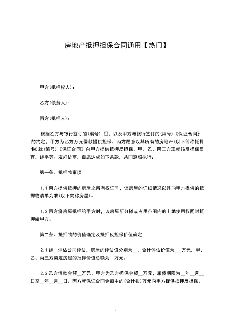 第二条本约抵押借款金额人民币________________万元。