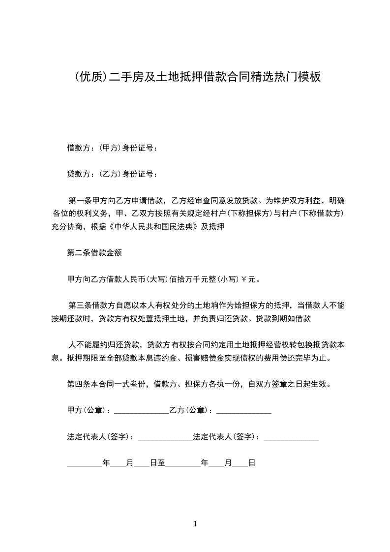 第一条乙方所有下列土地提向甲方抵押借款。