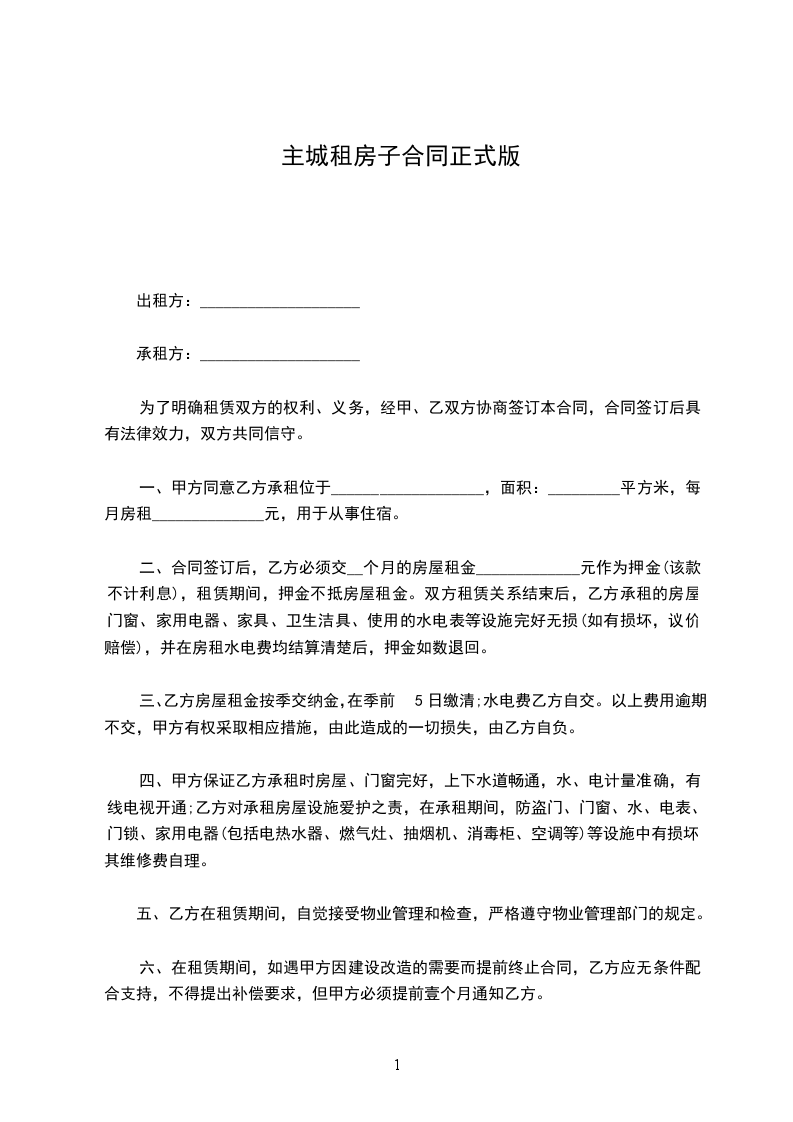 主城租房子合同正式版