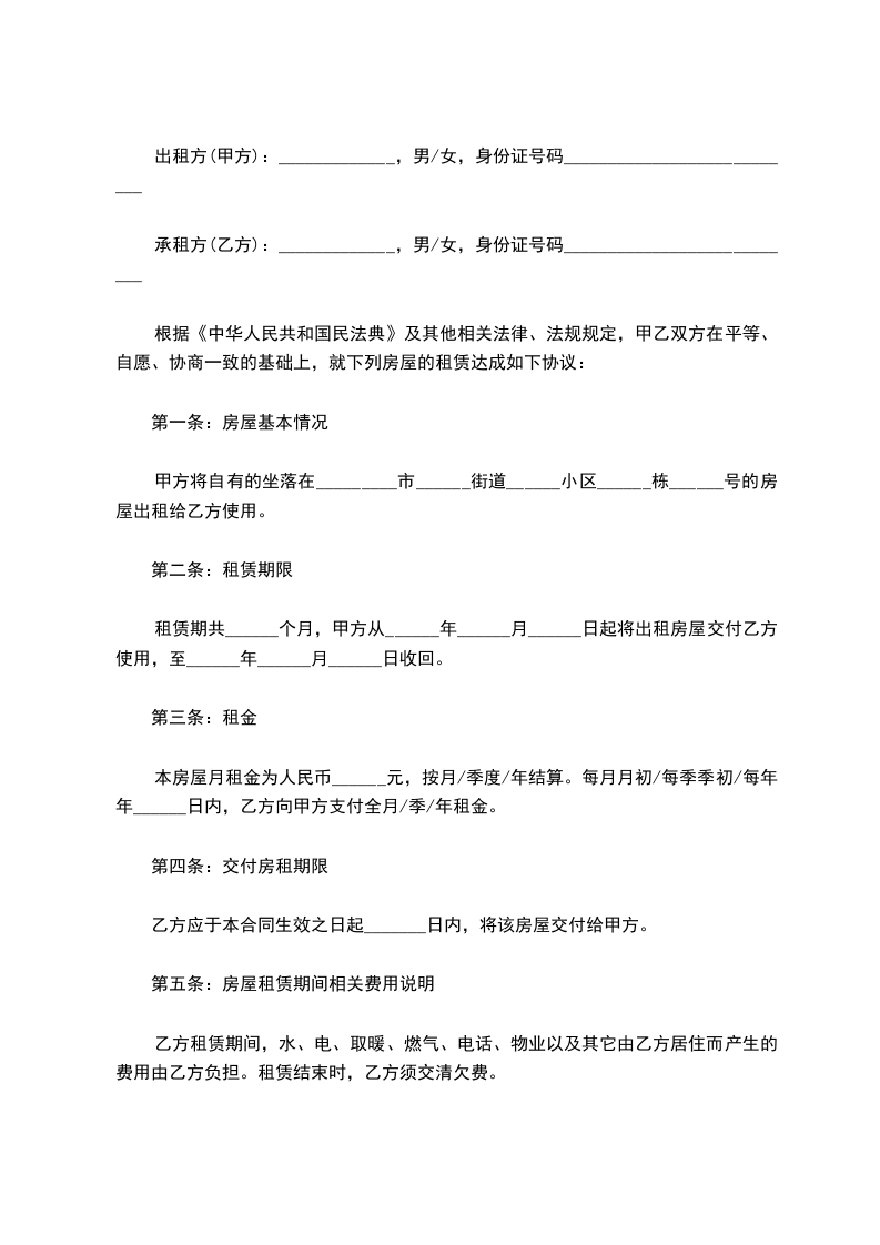 3、乙方同意支付甲方租房押金_________元整,此款将于租赁期满后由甲方返回乙方。