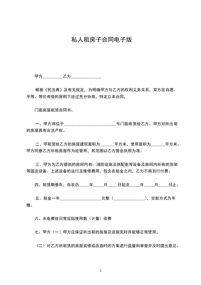 一、甲方将位于_________________________号门面租赁给乙方。甲方对所出租的房屋具有合法产权。
