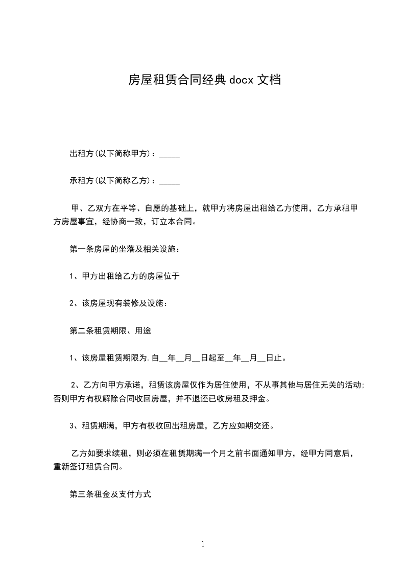 二、租赁期限,从20__年九月十五日至20__年九月十五日止,租期共五年,前五年每年租金为人民币_____元整,每年租金分两次支付;第六年开始租金每年按市场价调整。