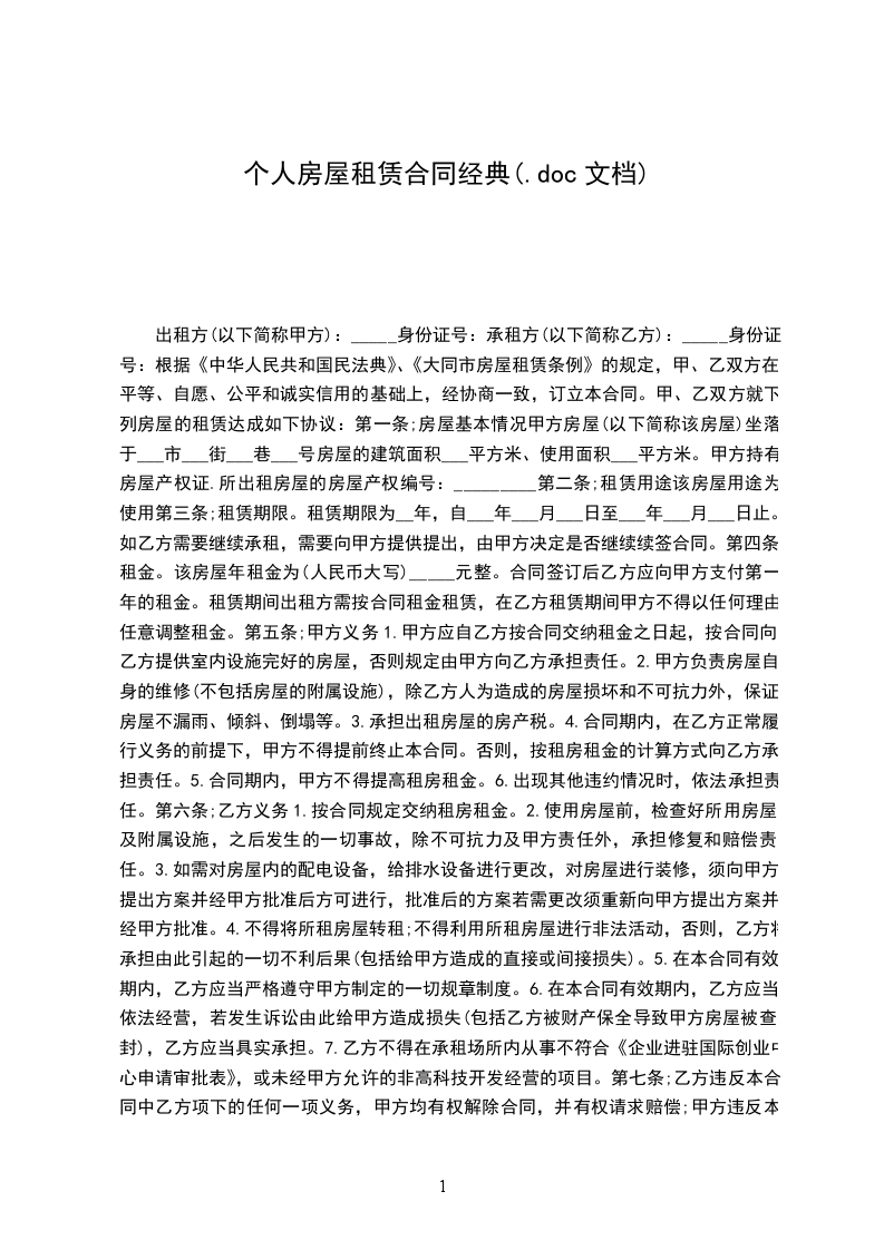 六、乙方不得利用该房屋之便进行非法活动,如有发现,甲方有权提前终止合同,乙方所缴纳的押金则作为赔偿甲方的违约金,乙方要承担因非法活动而产生的一切民事、经济、法律责任、甲方概不负责。