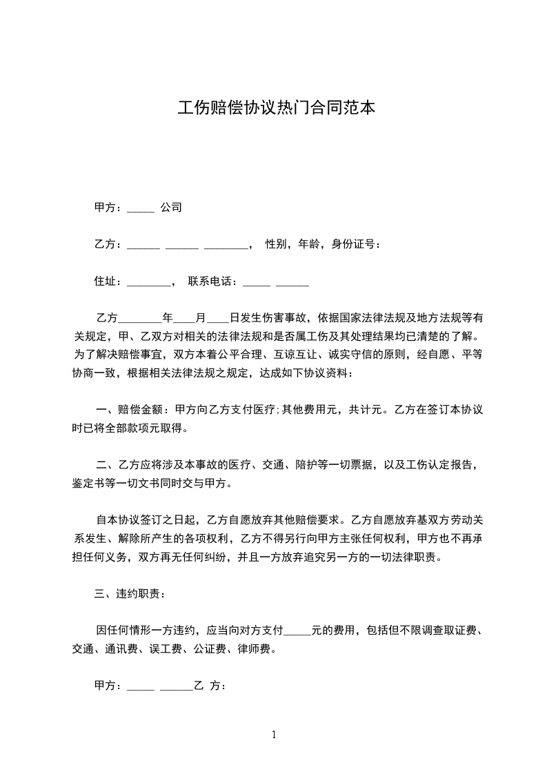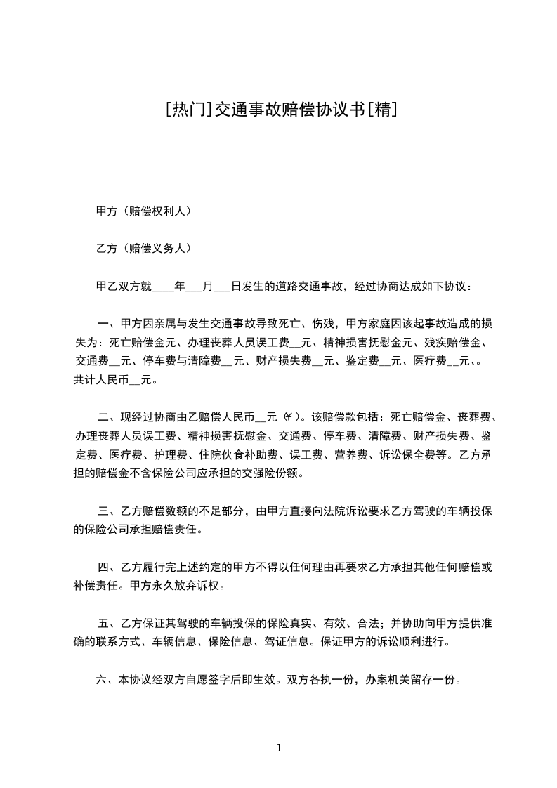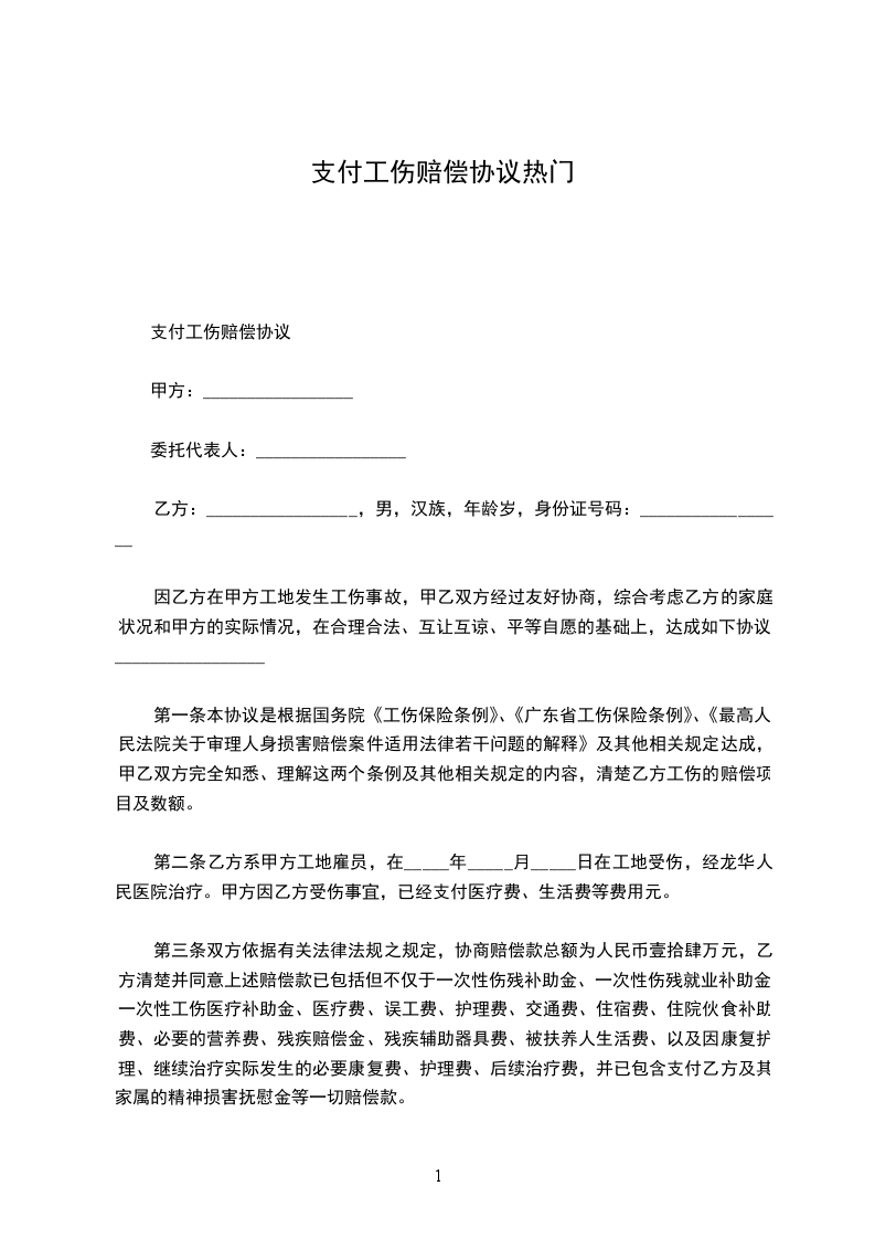 1、自乙方受伤之日起截止本协议签订之日所实际发生的和其它应当由甲方支付的医疗费、交通费等各项费,在本协议签订之前已由甲方全部付清,协议签订之后乙方不得再以任何理由向甲方主张前述期间发生的任何费用。