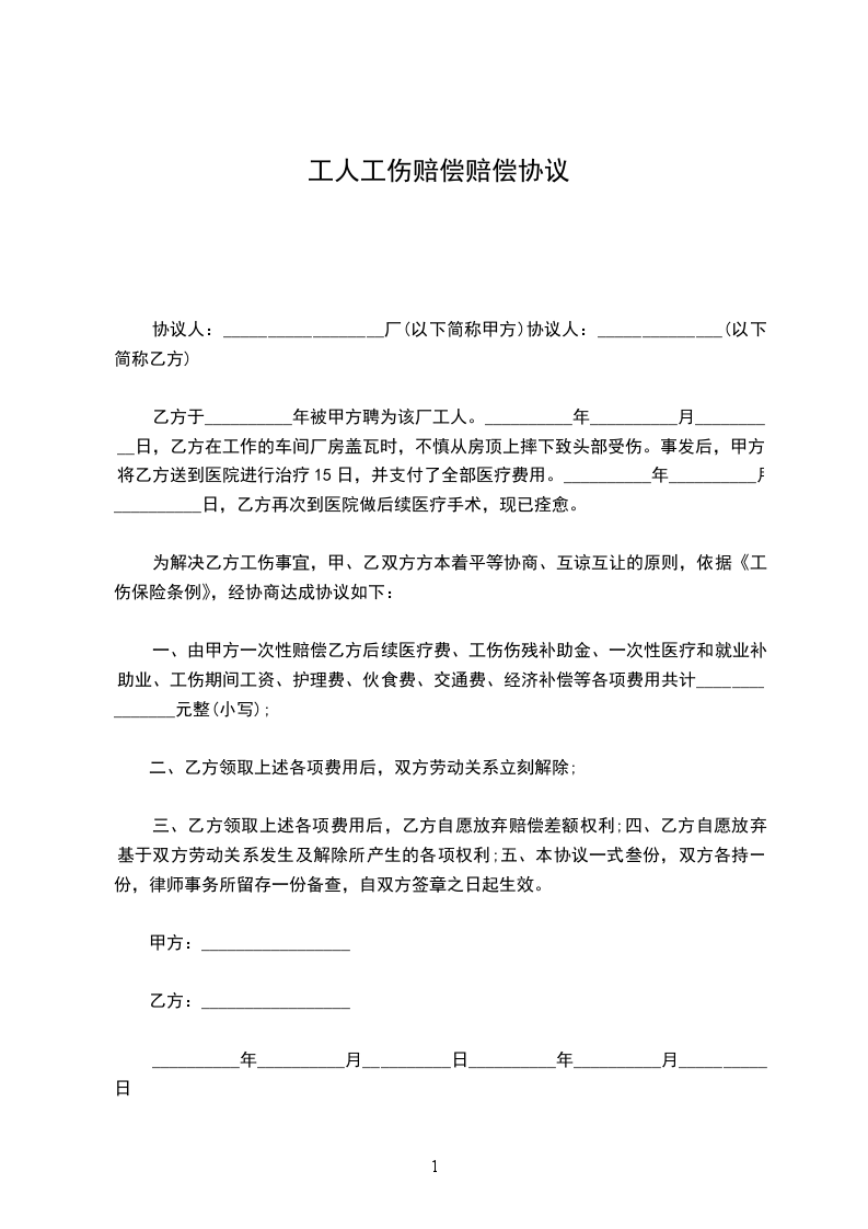 6、本协议为一次性终结处理协议,双方当事人应以此为断,全面切实履行合同,不得再以任何理由纠缠。乙方今后身体或精神出现任何问题均与甲方无关。