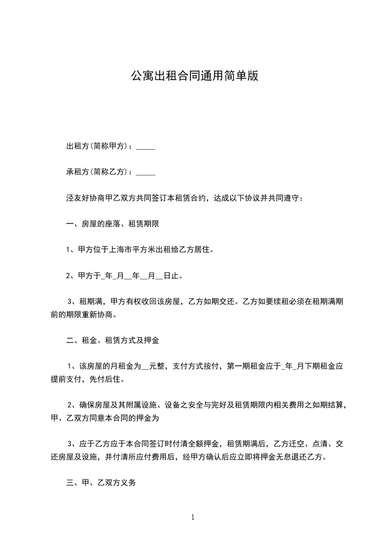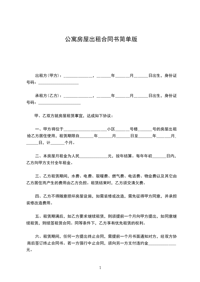 一、出租人愿意将座落在_________市_________区_________号的房子给承租人使用,承租人对此房屋现状已作充分了解,自愿租用。