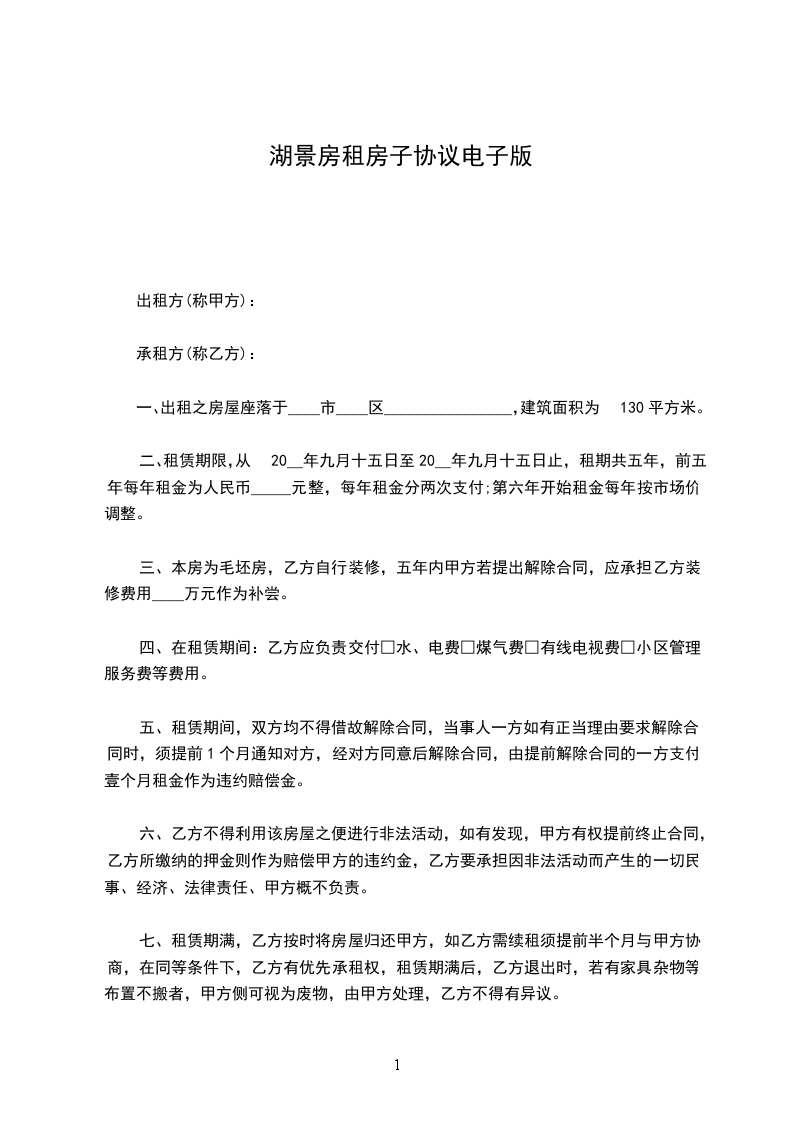三、本房为毛坯房,乙方自行装修,五年内甲方若提出解除合同,应承担乙方装修费用____万元作为补尝。